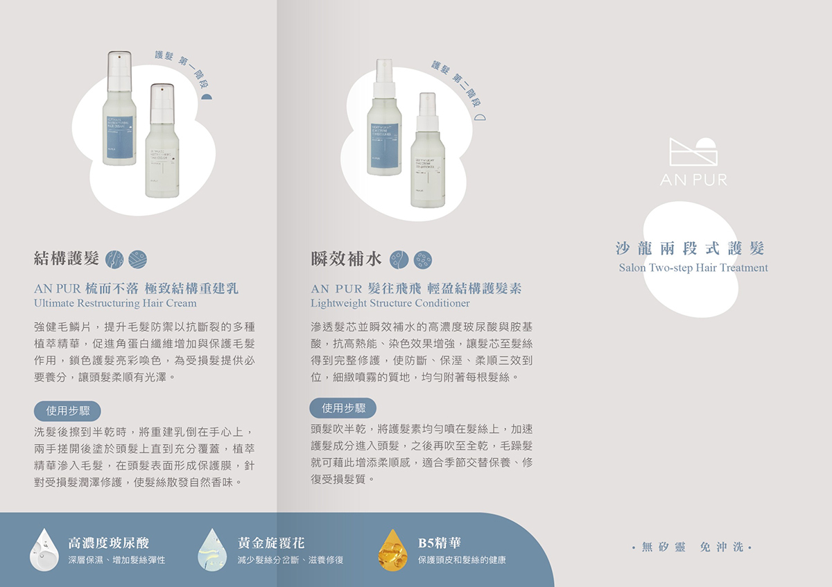洗髮後不使用潤髮或瞬護產品,直接撥至五分乾後塗抹。