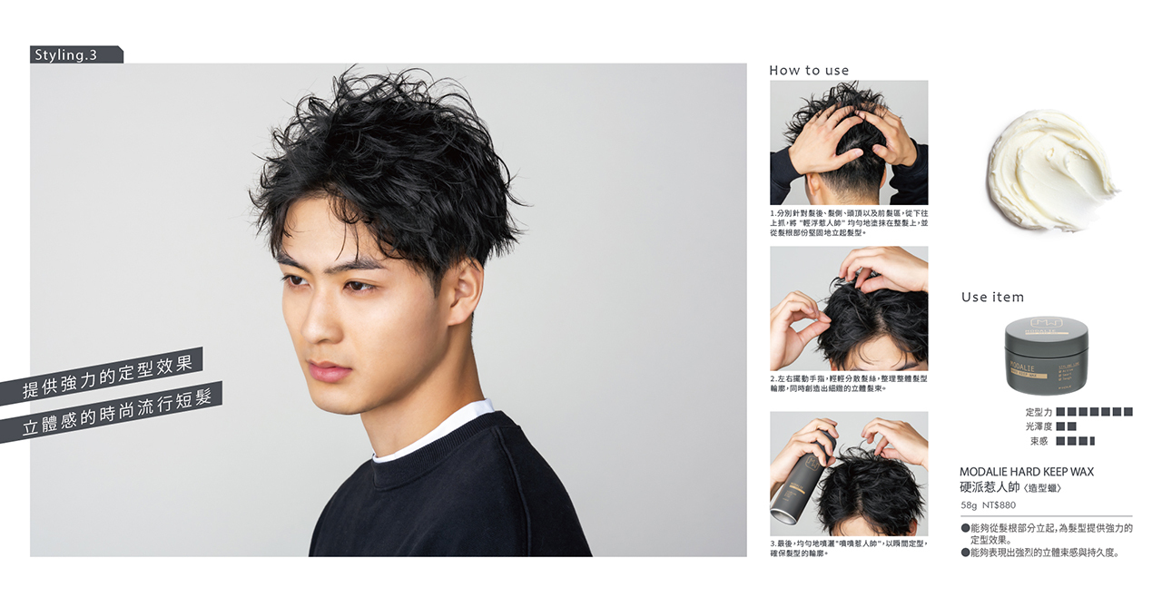 取適量於手中搓揉,再塗抹於想造型區域