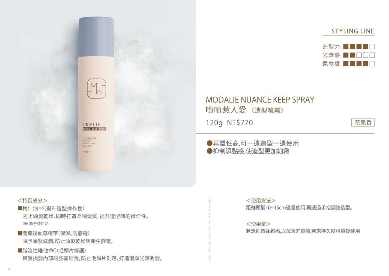 若想創造蓬鬆感,以薄薄的量噴,若求持久度可重複使用