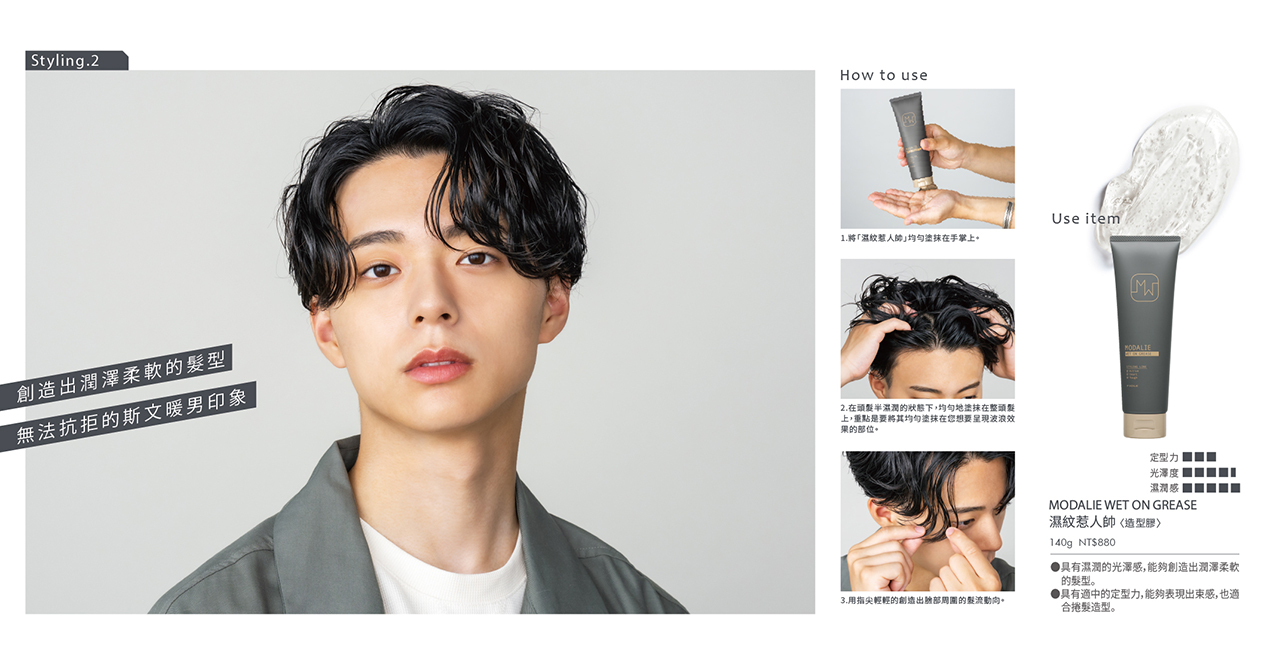 具有濕潤的光澤感,適中的定型力,能創造出潤澤柔軟的髮型