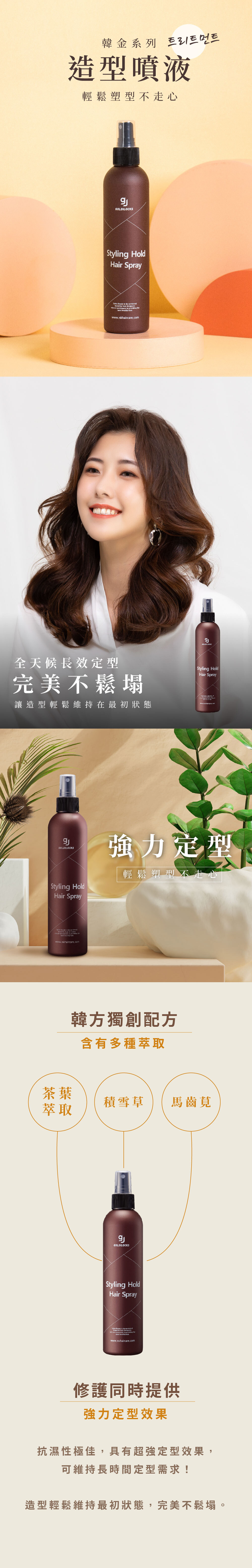 韓方獨創配方,含茶葉萃取、積雪草、馬齒莧等多種植物萃取,修護同時提供強力的定型效果