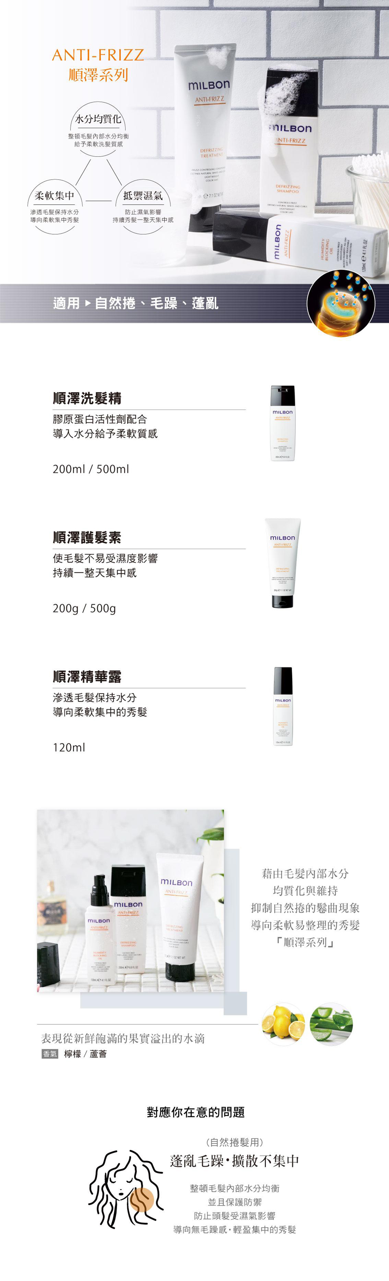 針對自然捲的鬈曲現象,透過保濕成分DPG使內部水分均質化, 以保護油包覆毛髮表面維持水分,導向柔軟易整理的秀髮。