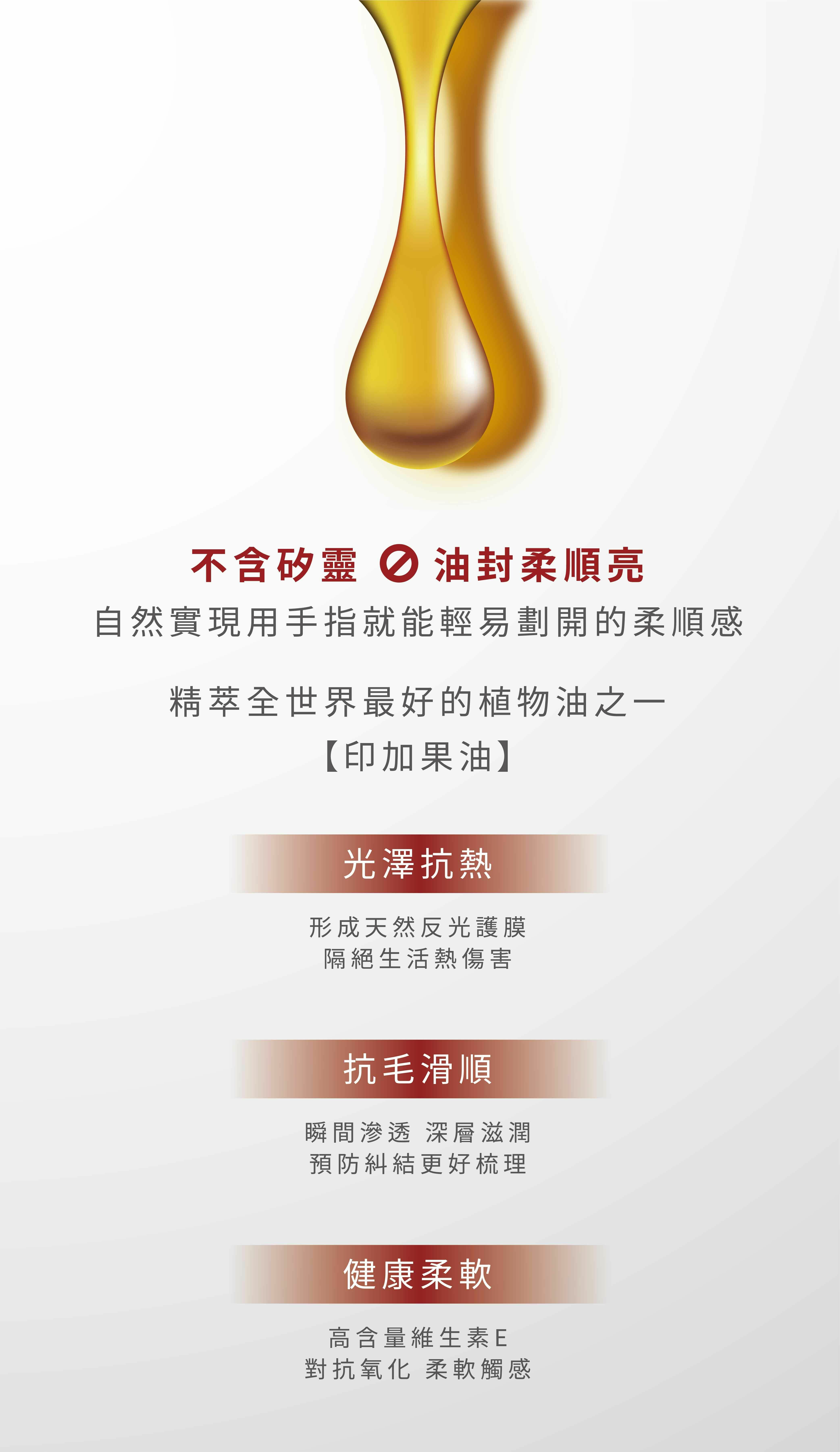 ◎ 特別添加印加果油,抵禦熱傷害,提升頭髮防護力,讓秀髮柔順有光澤