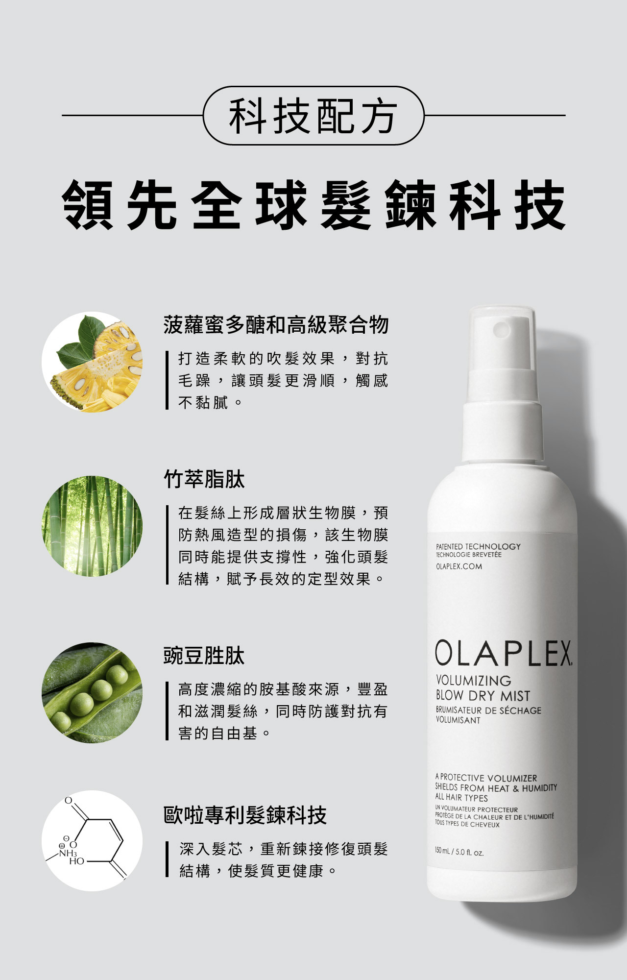 OLAPLEX® 「髮鍊結構專利」,提供快速修護效能,不論是漂、染、燙髮,都能重建秀髮結構,恢復彈力亮澤!蘊含高濃度的專利配方,深層修護。深入頭髮結構。