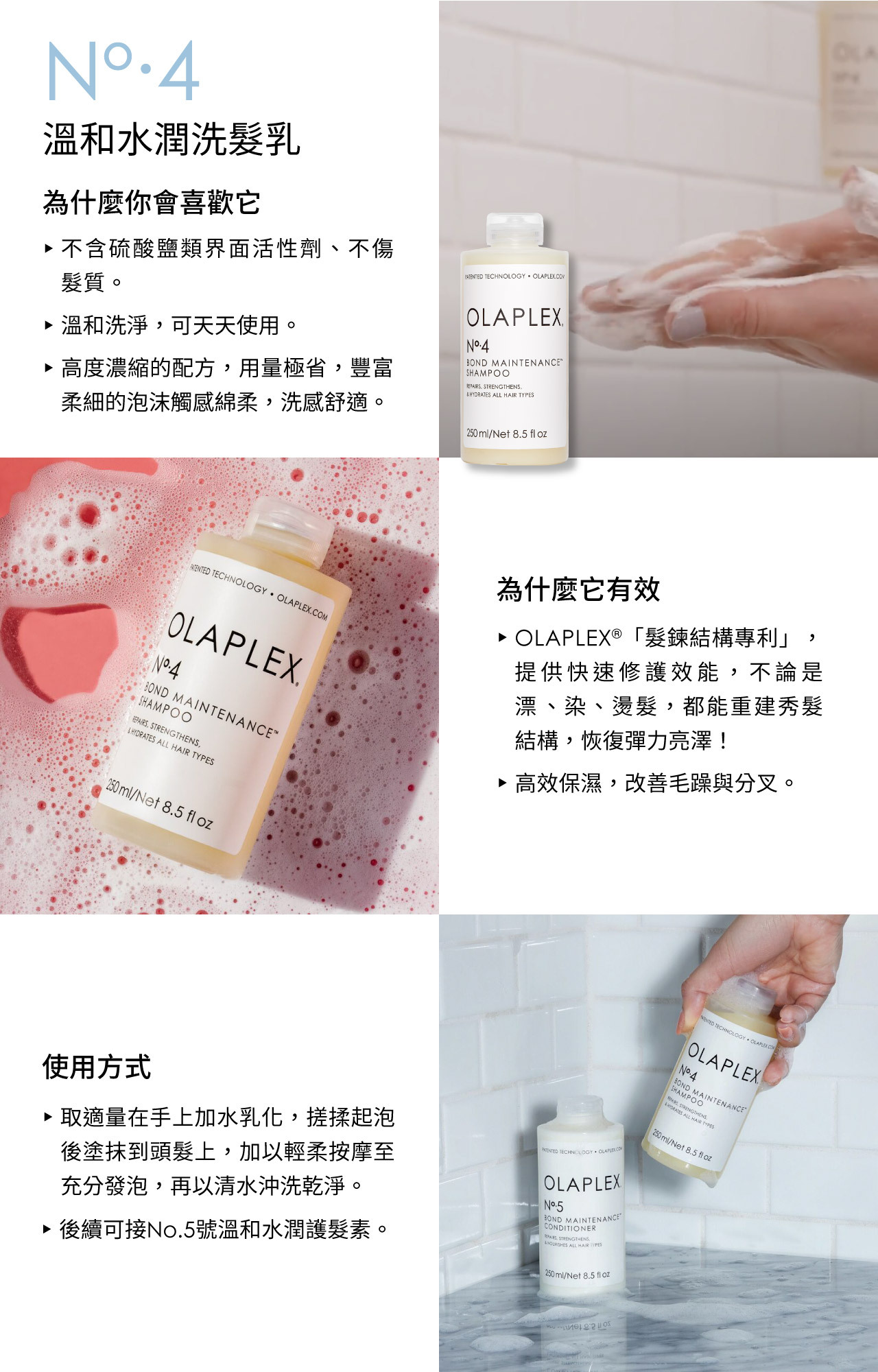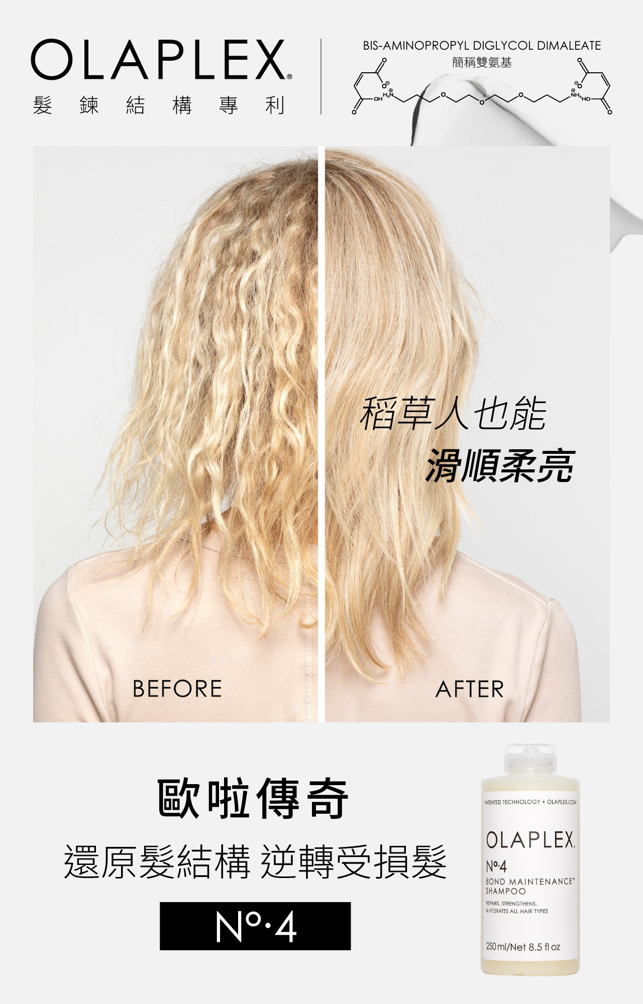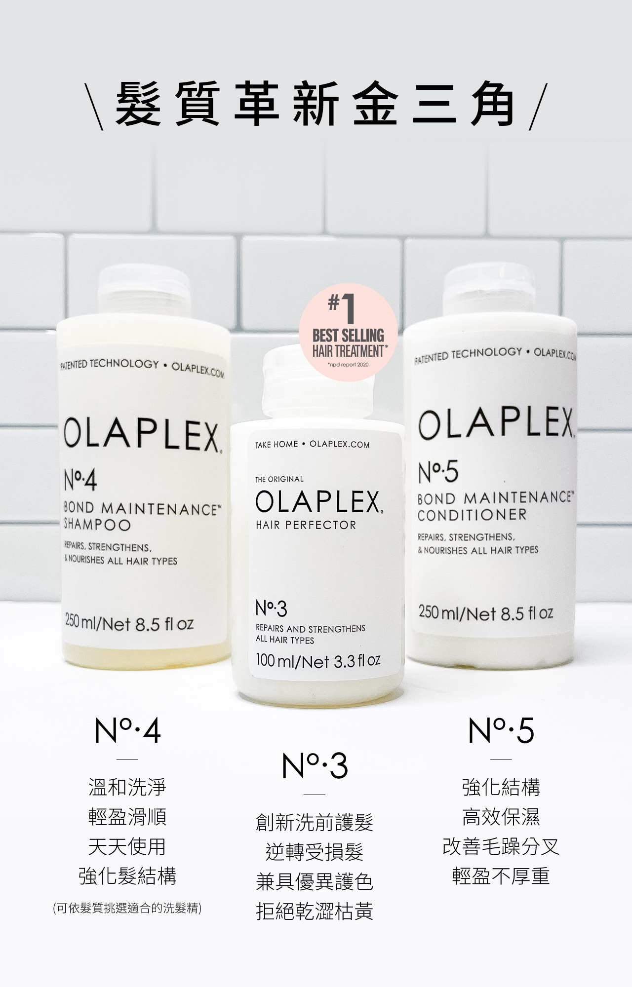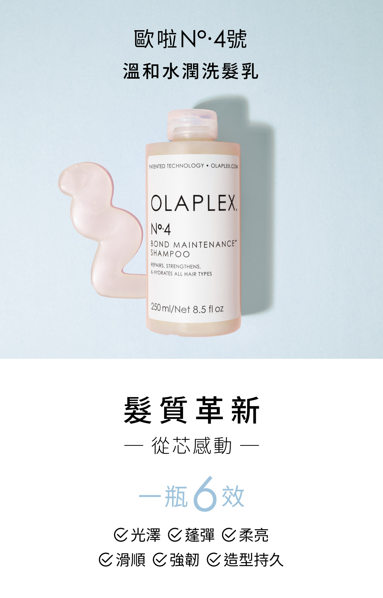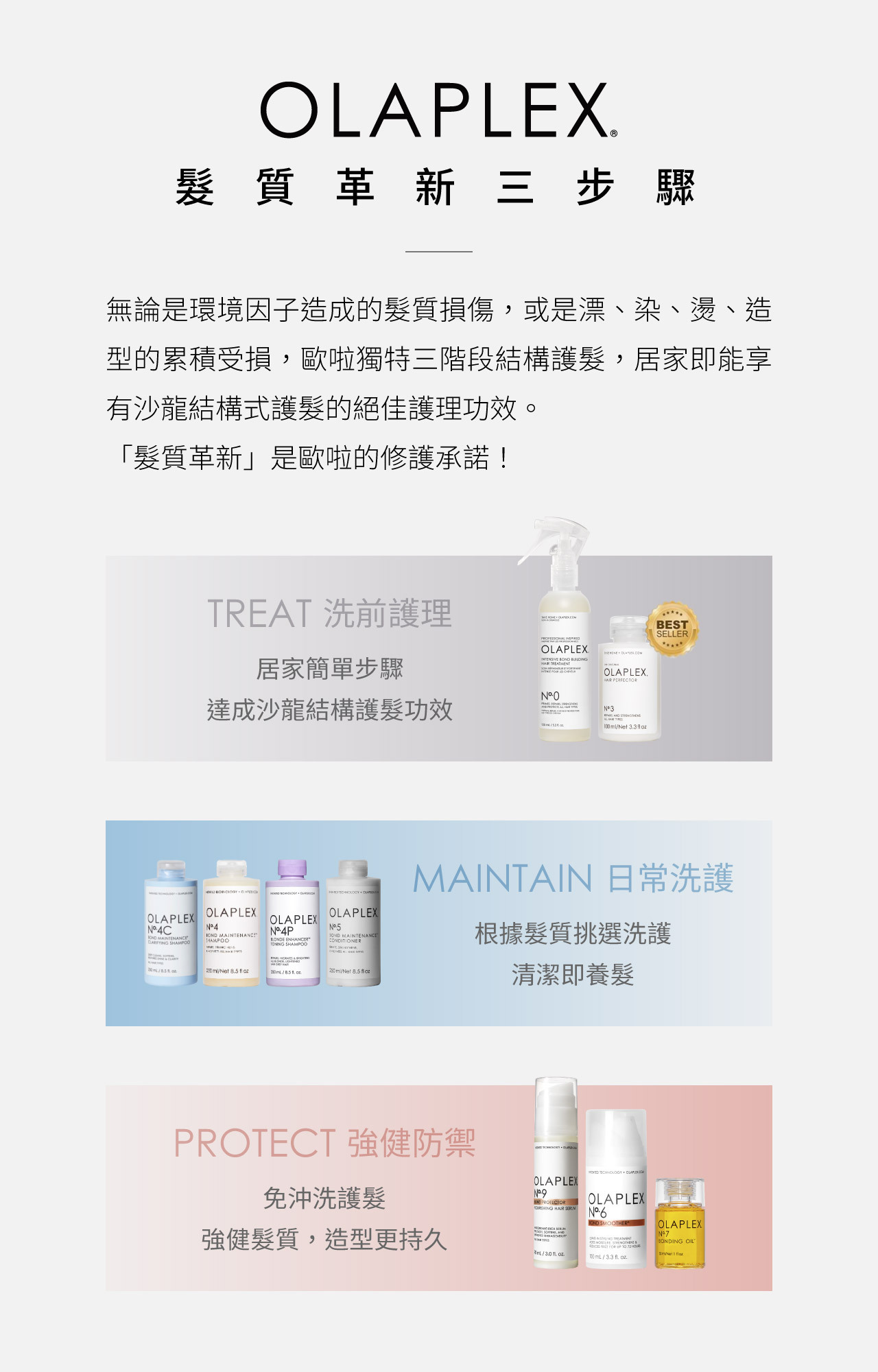 ▸Olaplex®「髮鍊結構專利」,提供快速修護效能,