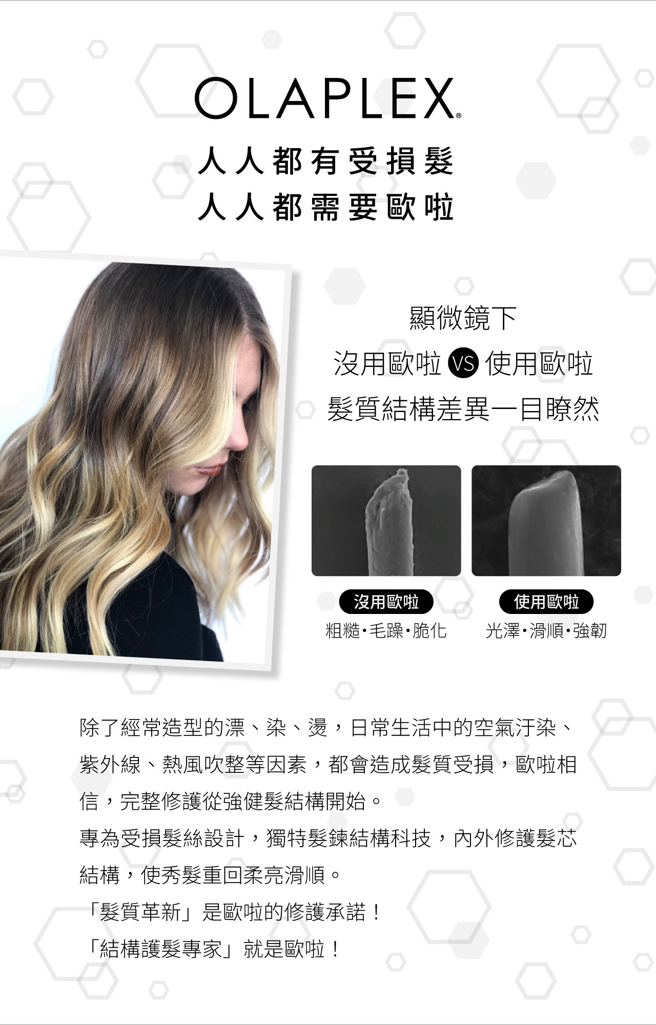 • 漂染後也能擁有強韌柔順的髮絲。