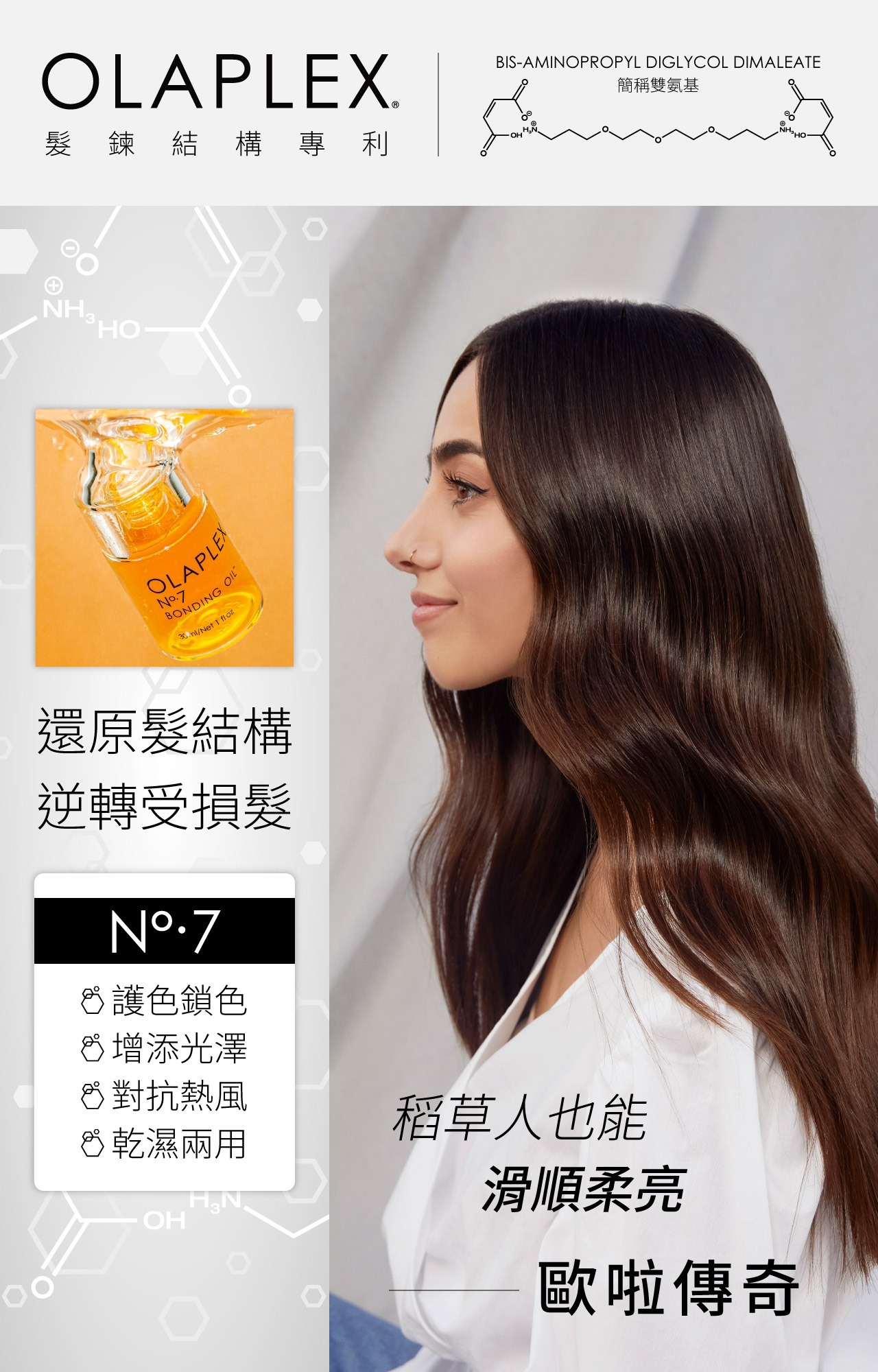 • 給予頭髮超乎想像的高光澤、柔軟及強韌。